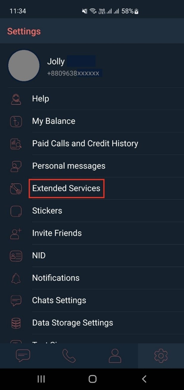 আপনার ব্রিলিয়ান্ট অ্যাপের সেটিংসে যান এবং Extended Services অপশন সিলেক্ট করুন