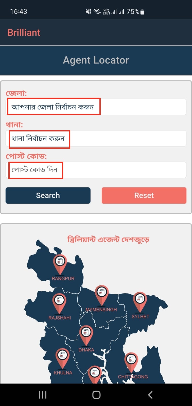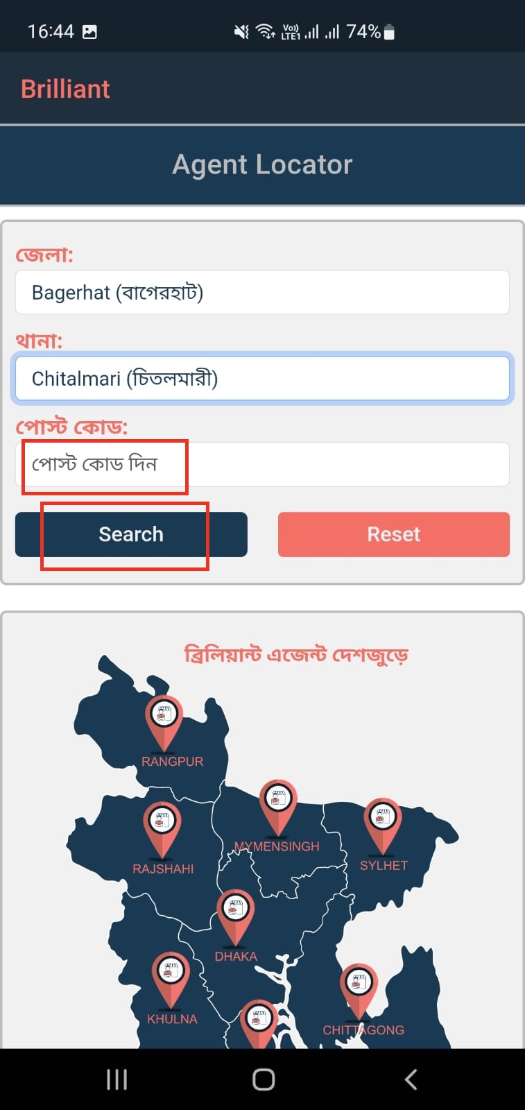আপনার পোস্ট কোড জানা থাকলে তৃতীয় বক্সে লিখুন (এই তথ্যটি ঐচ্ছিক) এবং Search অপশনে ট্যাপ করুন