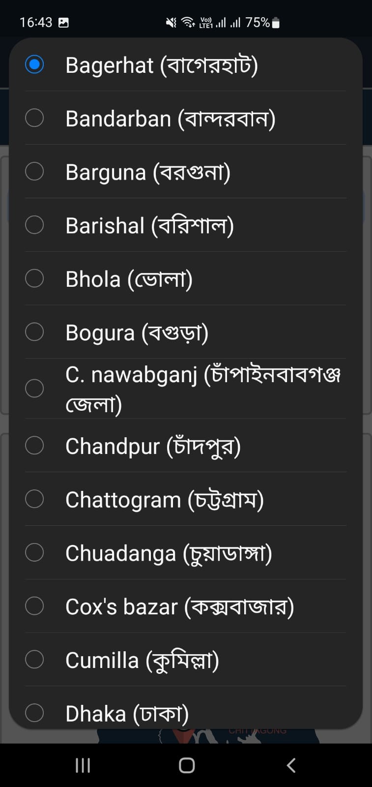 প্রথম ড্রপ বক্স থেকে আপনার জেলা নির্বাচন করুন
