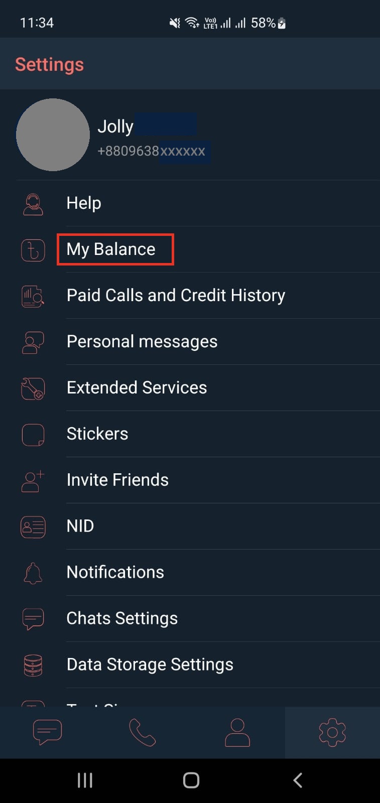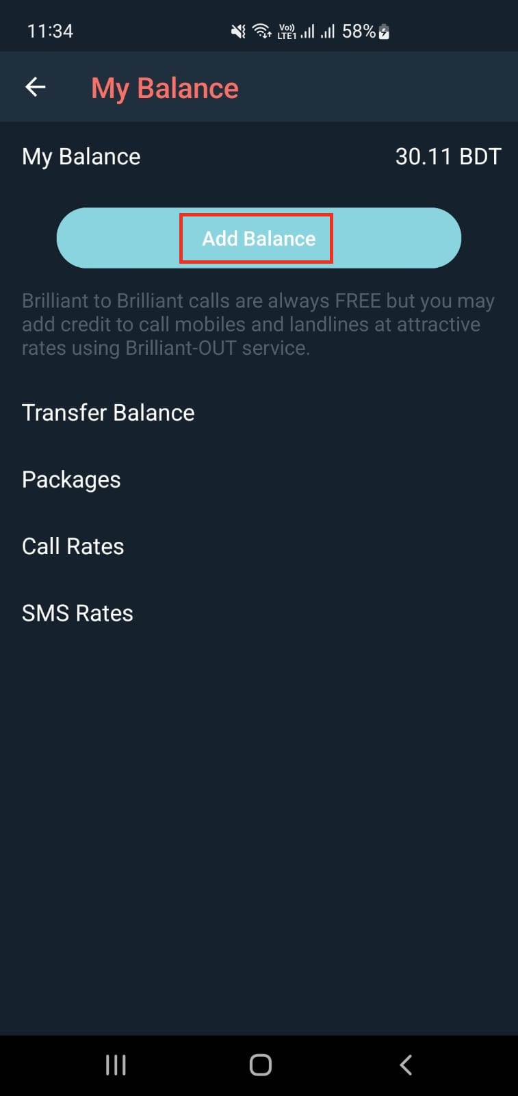 আপনার ব্রিলিয়ান্ট অ্যাপের সেটিংসে যান এবং My Balance অপশন সিলেক্ট করুন