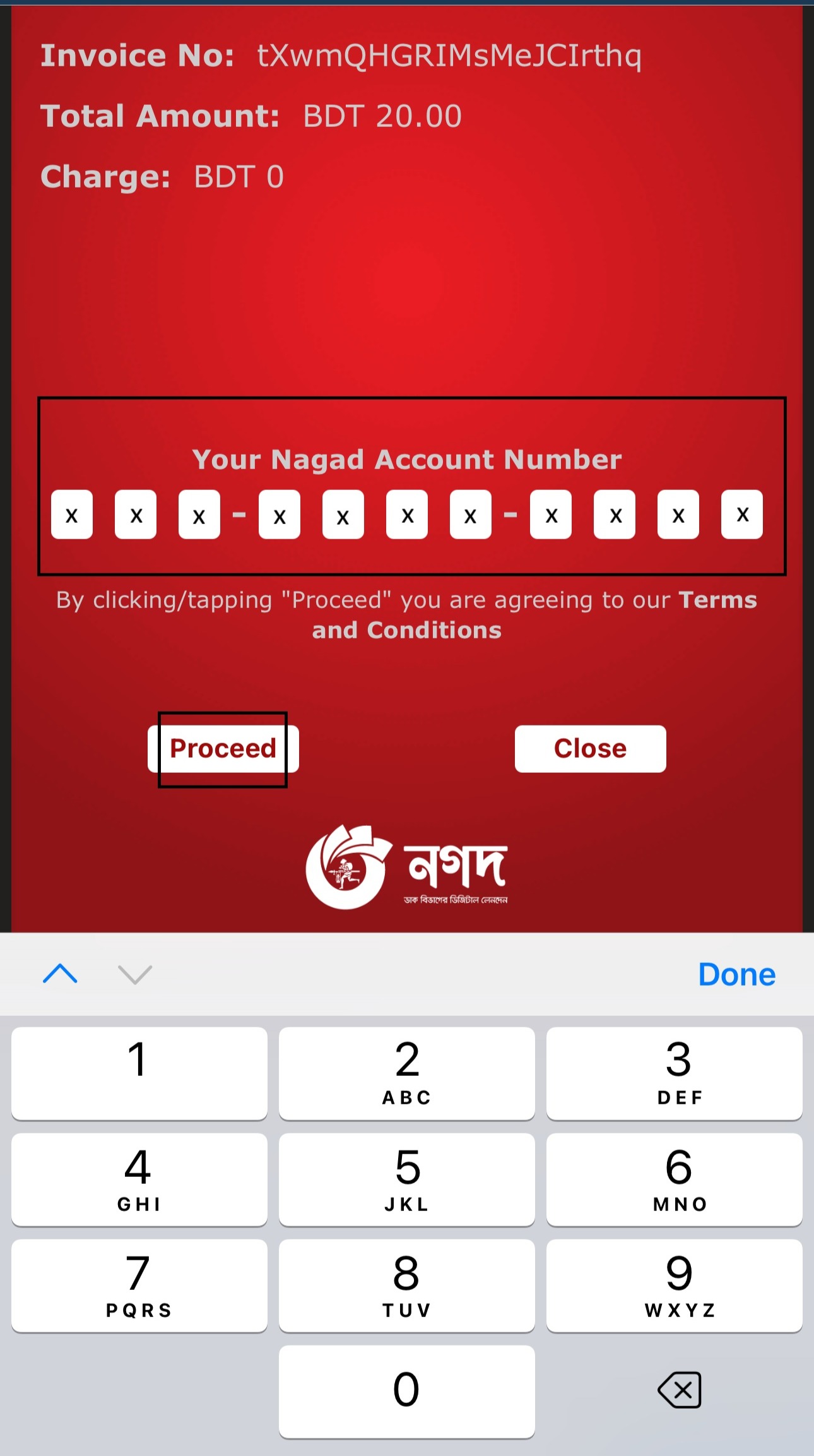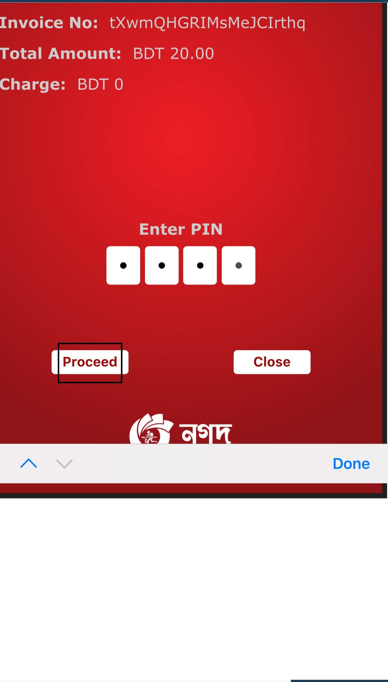 আপনার নগদ নম্বরের পিন কোড লিখুন এবং ‘Proceed’ অপশনটি সিলেক্ট করুন