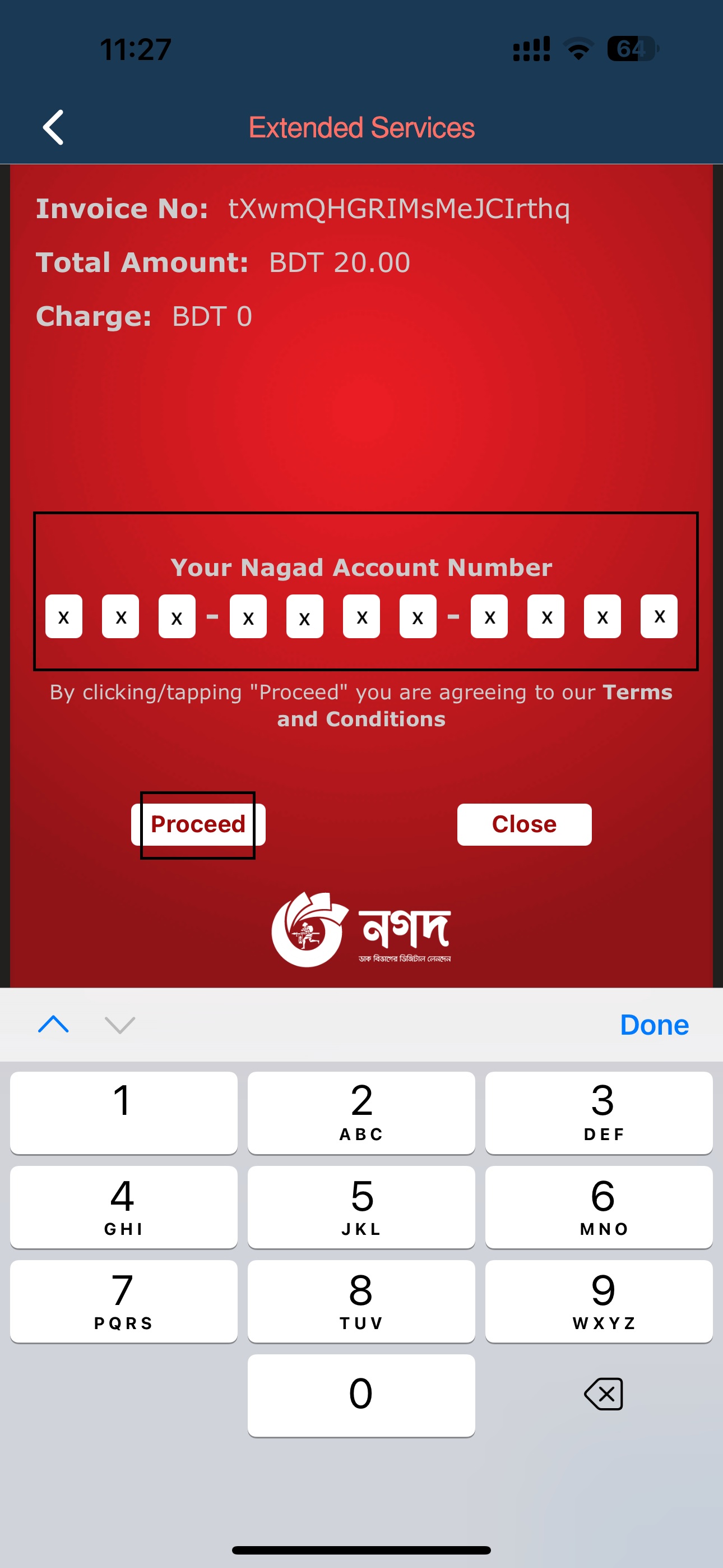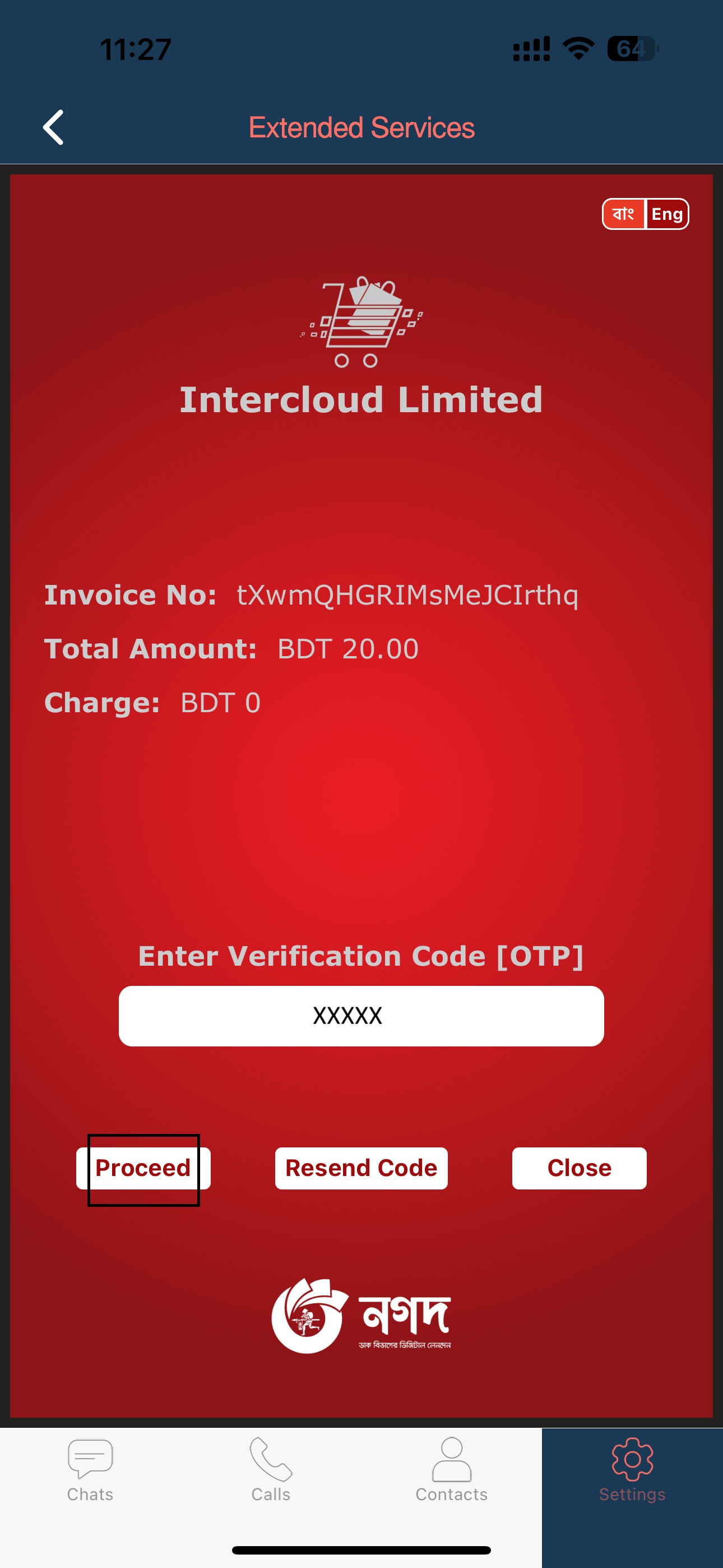 ????? ??? ?????????? ?????? ???? OTP SMS ????, ????? ???? Nagad verification code ????? ??? ‘Proceed’ ?????? ??????? ????